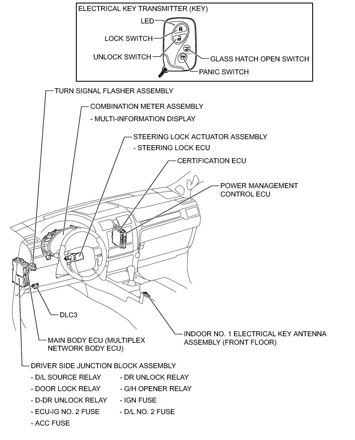 THEFT DETERRENT / KEYLESS ENTRY: SMART ACCESS SYSTEM WITH PUSH-BUTTON START (for Entry Function): PARTS LOCATION
