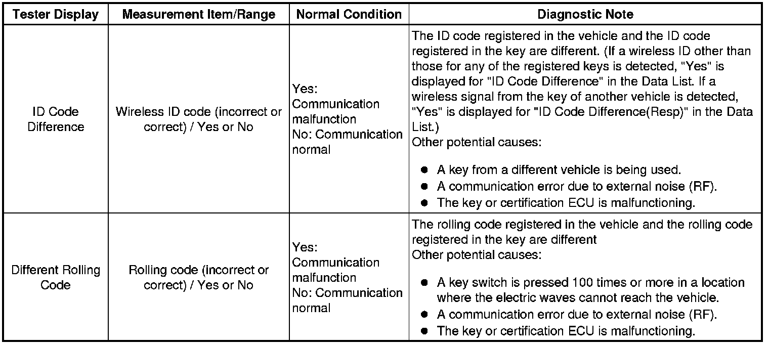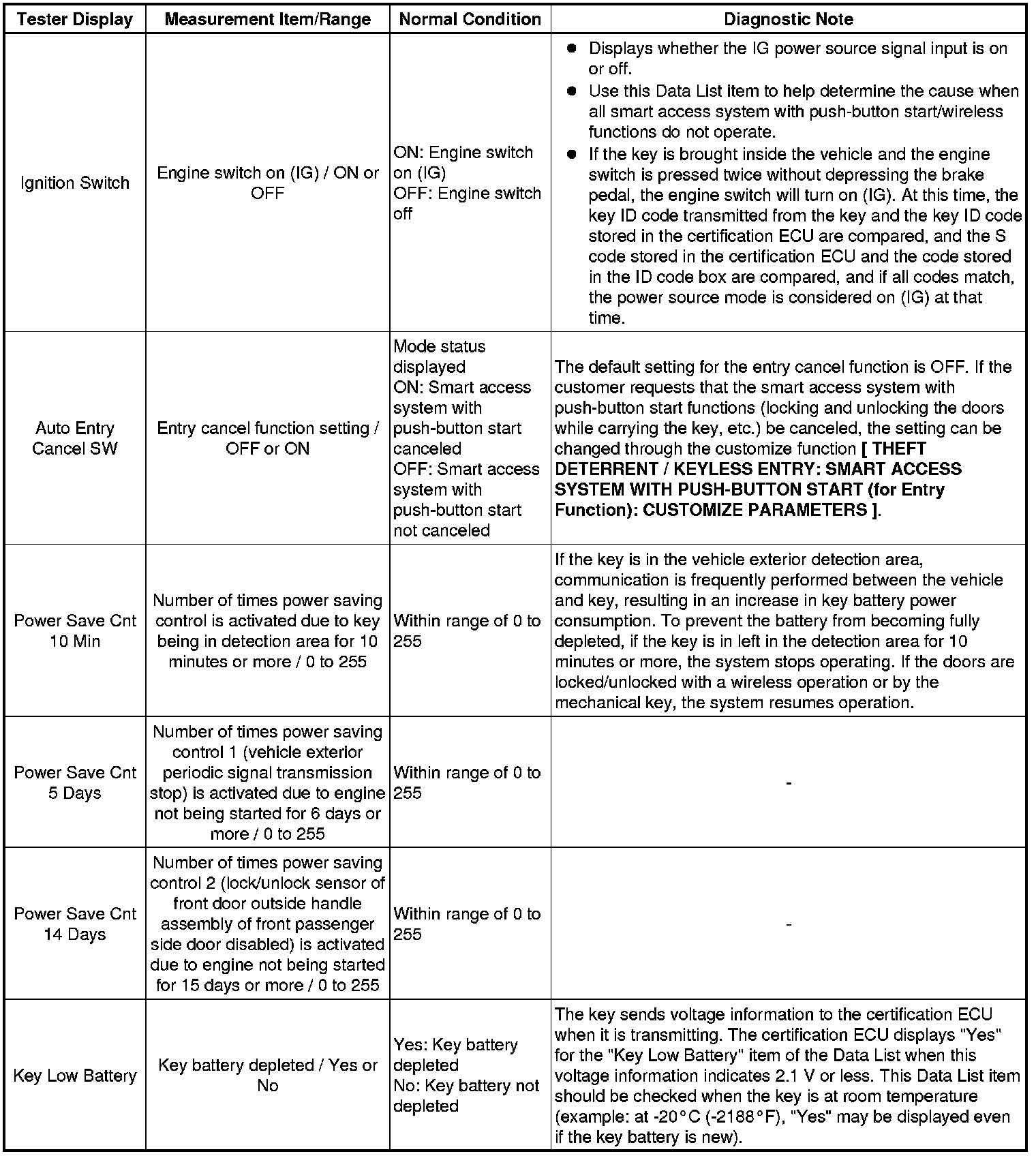 THEFT DETERRENT / KEYLESS ENTRY: SMART ACCESS SYSTEM WITH PUSH-BUTTON START (for Entry Function): DATA LIST / ACTIVE TEST