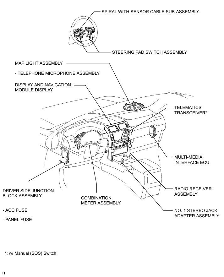 AUDIO / VIDEO: AUDIO AND VISUAL SYSTEM (w/ Multi-display): PARTS LOCATION