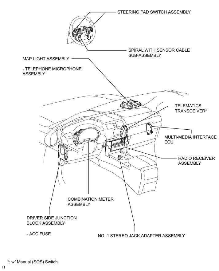 AUDIO / VIDEO: AUDIO AND VISUAL SYSTEM (w/o Multi-display): PARTS LOCATION