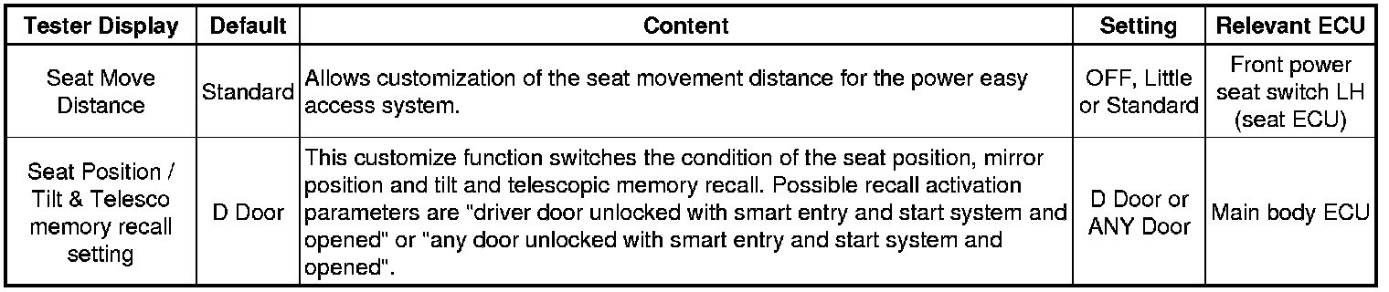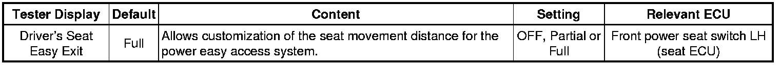 SEAT: FRONT POWER SEAT CONTROL SYSTEM: CUSTOMIZE PARAMETERS
