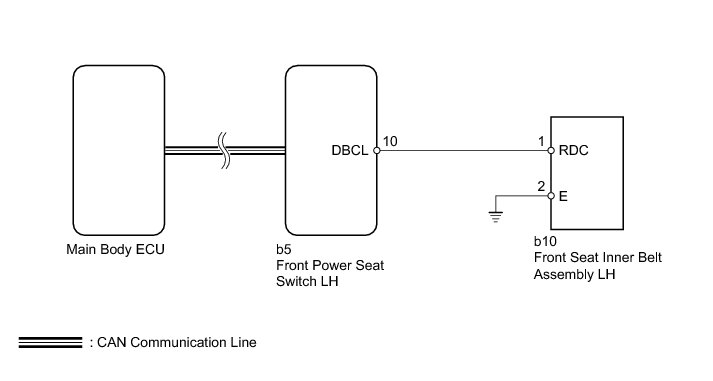 When the engine switch is off and the shift lever is in P, the power seat slides rearward when the seat belt tongue plate is disengaged from the front seat inner belt assembly LH (auto away function). Also, the power seat slides forward when the seat belt tongue plate is engaged with the front seat inner belt assembly LH with the engine switch on (ACC) or on (IG), or the shift lever in P.