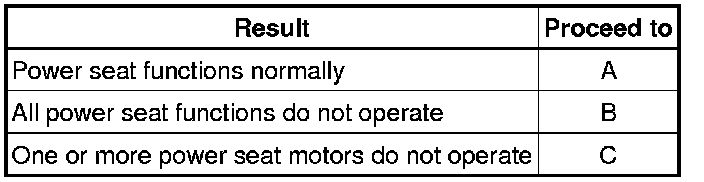C -- GO TO PROBLEM SYMPTOMS TABLE (One or more Power Seat Motors do not Operate) Problem Symptoms Table