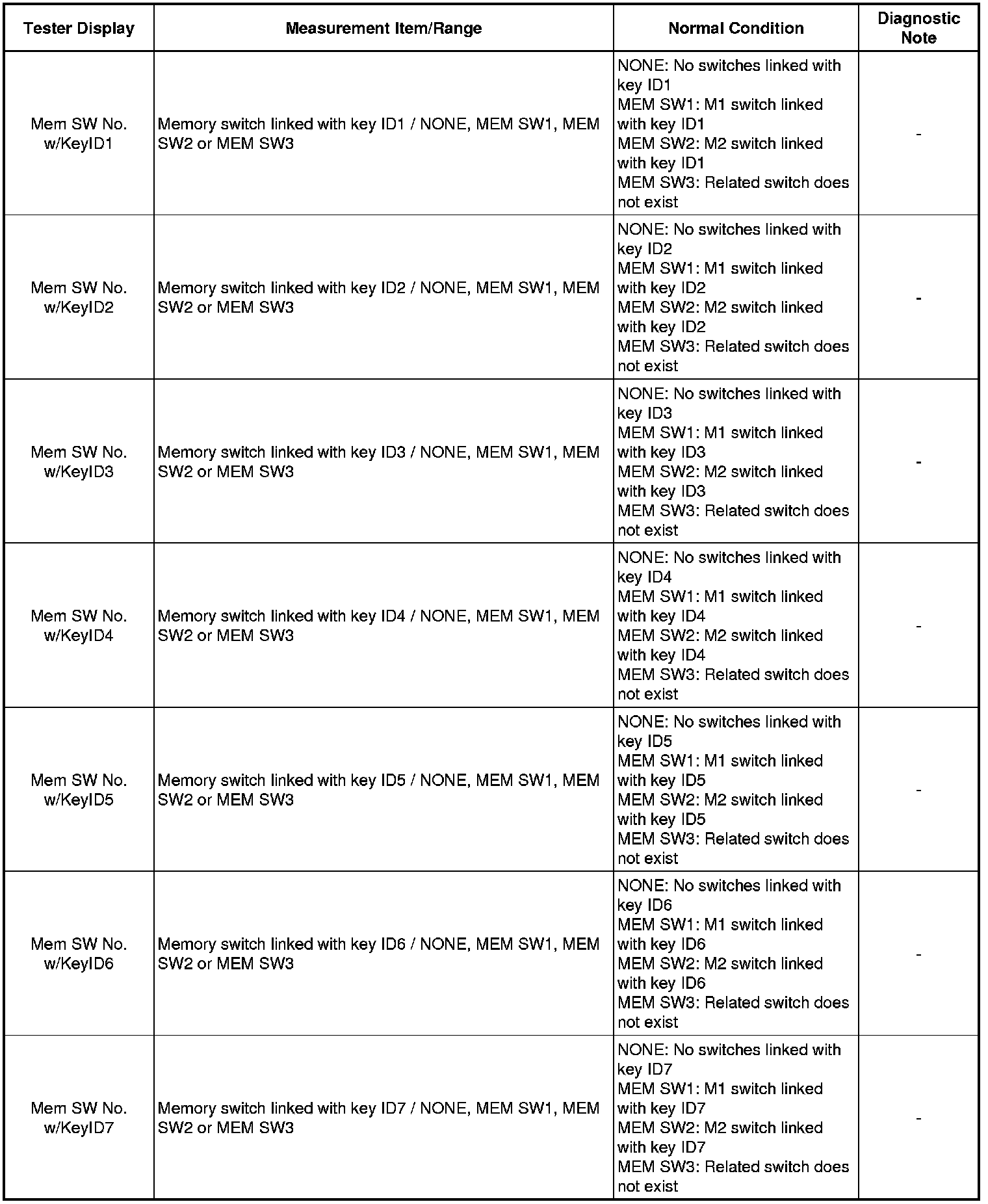 8. CHECK MEMORY CALL FUNCTION (SEAT MEMORY CALL)