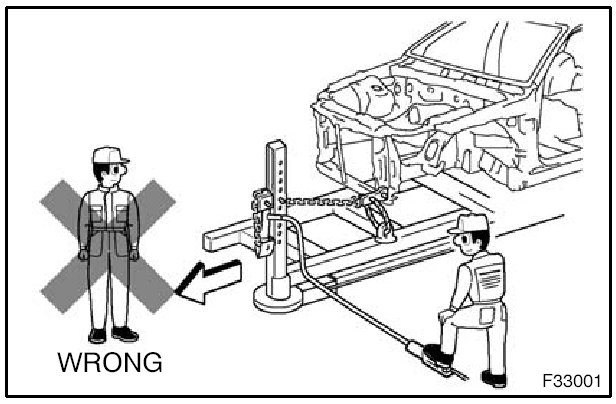 1. Never stand in the path of the chain when using a puller on the body or frame, and be sure to attach a safety cable.