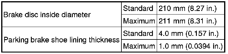 SPECIFICATIONS: PARKING BRAKE: SERVICE DATA