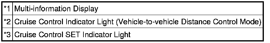 When the cruise control switch is pushed to -SET and held while the vehicle-to-vehicle distance control mode is in operation, the stored vehicle speed decreases by approximately 5 km/h or 5 mph.