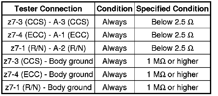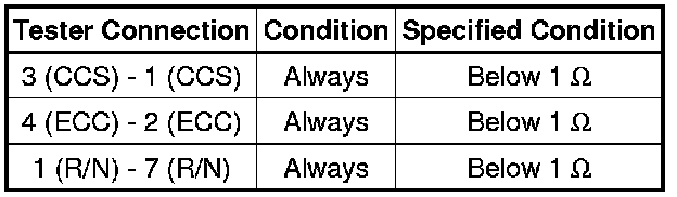 (3) Set the spiral with sensor cable sub-assembly to the center position and rotate the spiral with sensor cable sub-assembly 2.5 times clockwise. Then, while rotating the spiral with sensor cable sub-assembly 5 times counterclockwise, measure the resistance according to the value(s) in the table below.