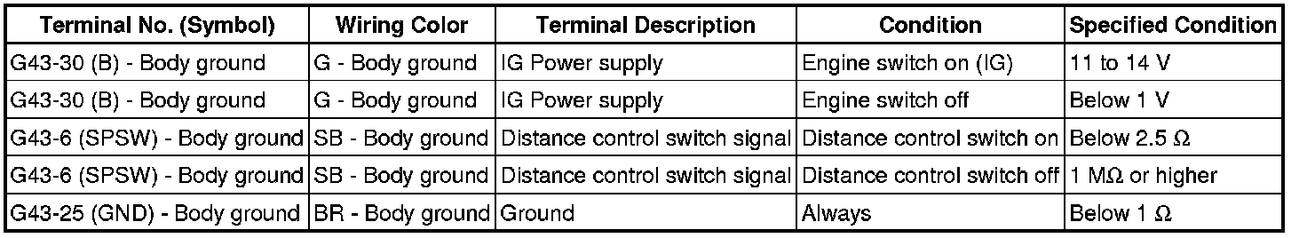 CRUISE CONTROL: DYNAMIC RADAR CRUISE CONTROL SYSTEM: TERMINALS OF ECU