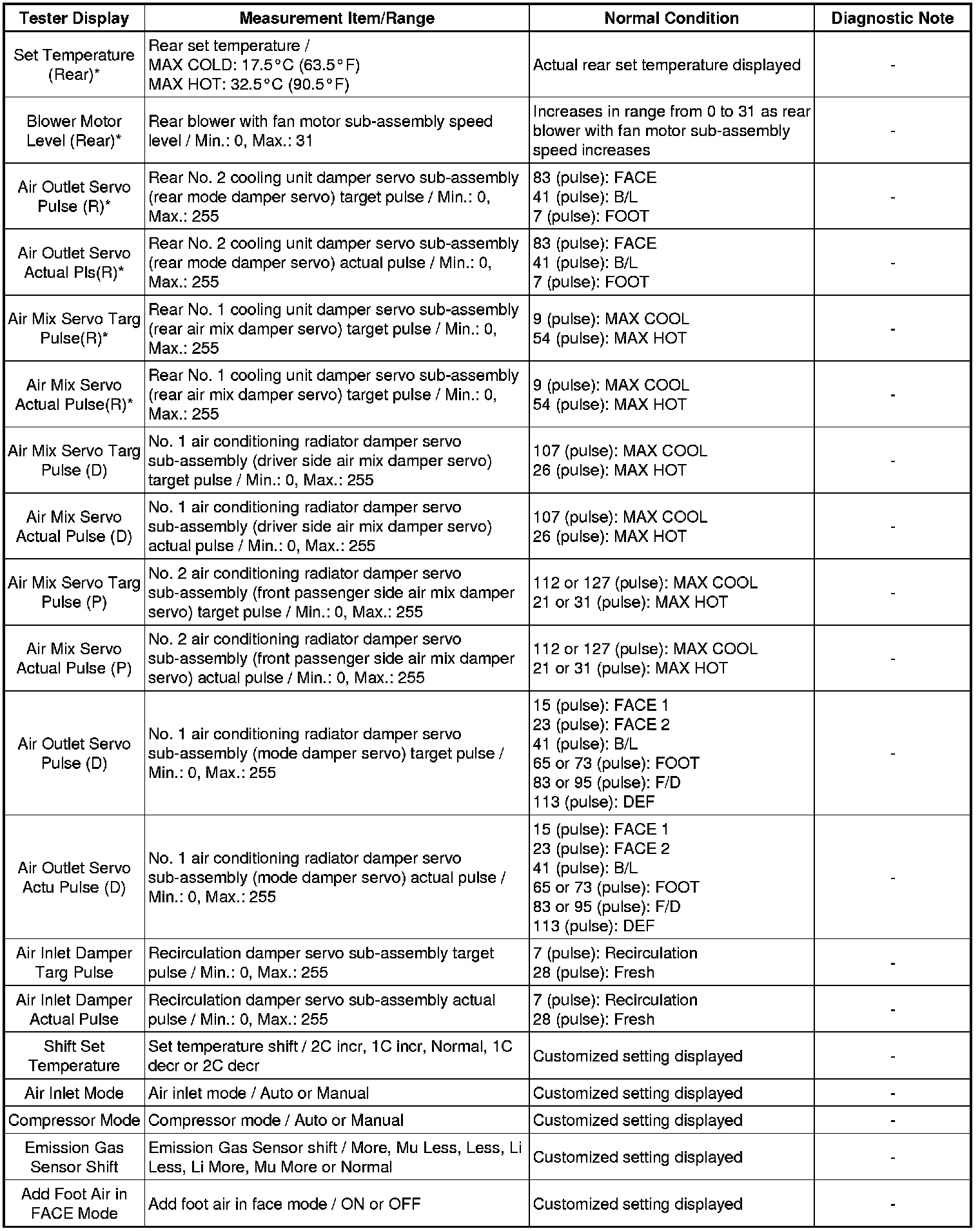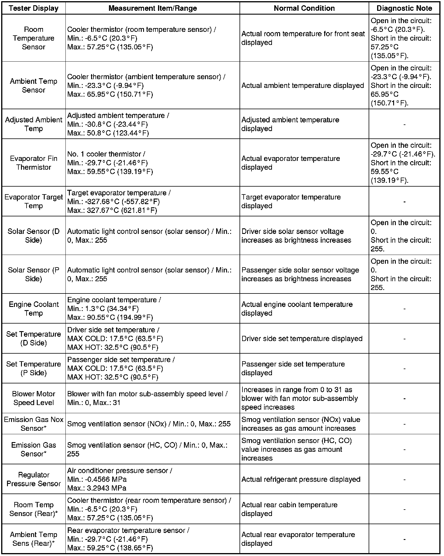 Body Electrical / Air Conditioner / Data List.
