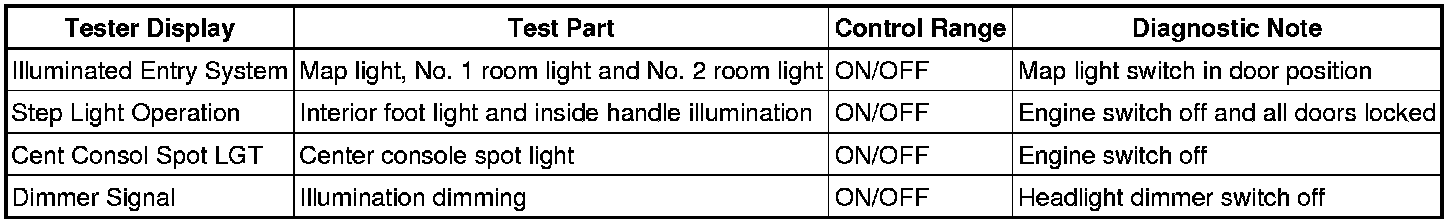 LIGHTING (INT): LIGHTING SYSTEM: DATA LIST / ACTIVE TEST