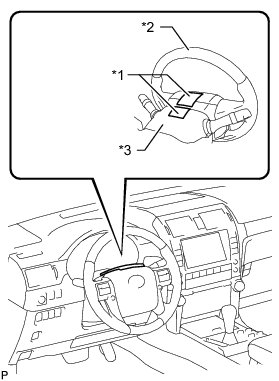 Look at the upper surface of the steering wheel, steering spoke and SRS airbag line to find the center position.