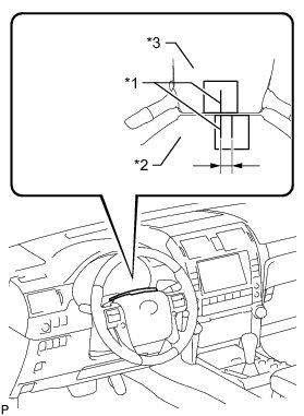 (6) Measure the distance between the 2 lines on the masking tape on the steering wheel.