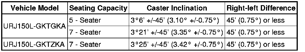Standard Steering Axis Inclination (Unloaded Vehicle)