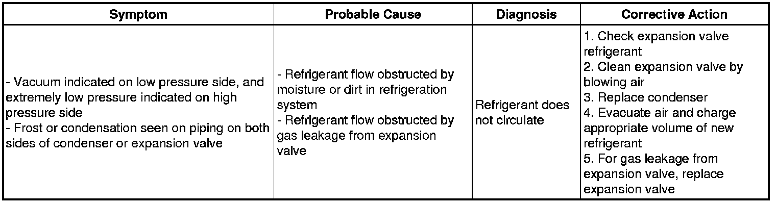 (4) The A/C system does not function effectively due to poor circulation of the refrigerant.