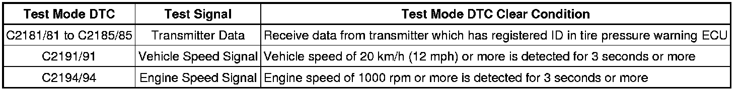 TIRE PRESSURE MONITORING: TIRE PRESSURE WARNING SYSTEM: TEST MODE PROCEDURE