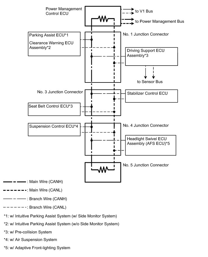 (a) The V1 bus, V2 bus, MS bus, power management bus and sensor bus each have termination circuits with a resistance of 120 Ohms x 2. High speed communication at 500 kbps and 250 kbps is possible.