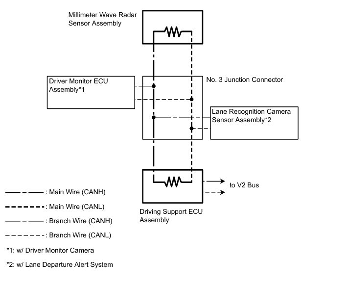 (1) The main wire is a wire harness between the 2 termination circuits on the bus (communication line). This is the main bus in the CAN communication system.