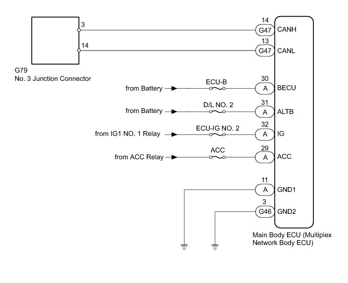 NG -- REPAIR OR REPLACE MAIN BODY ECU CAN BRANCH WIRE OR CONNECTOR (CANH, CANL)