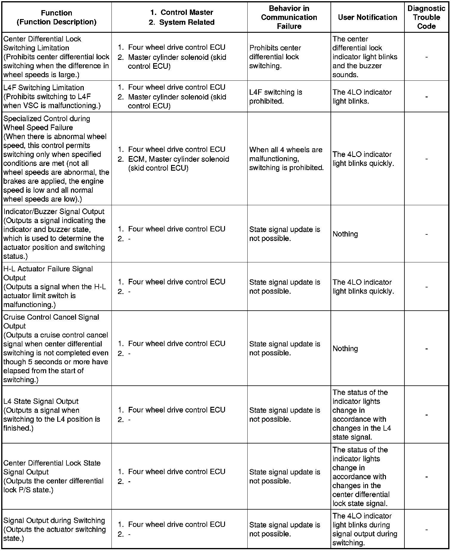 (a) When communication fails in any of the CAN bus wires (communication wires), a fail-safe function(s) operates. The fail-safe function that is specified for each system operates to prevent those systems from malfunctioning.