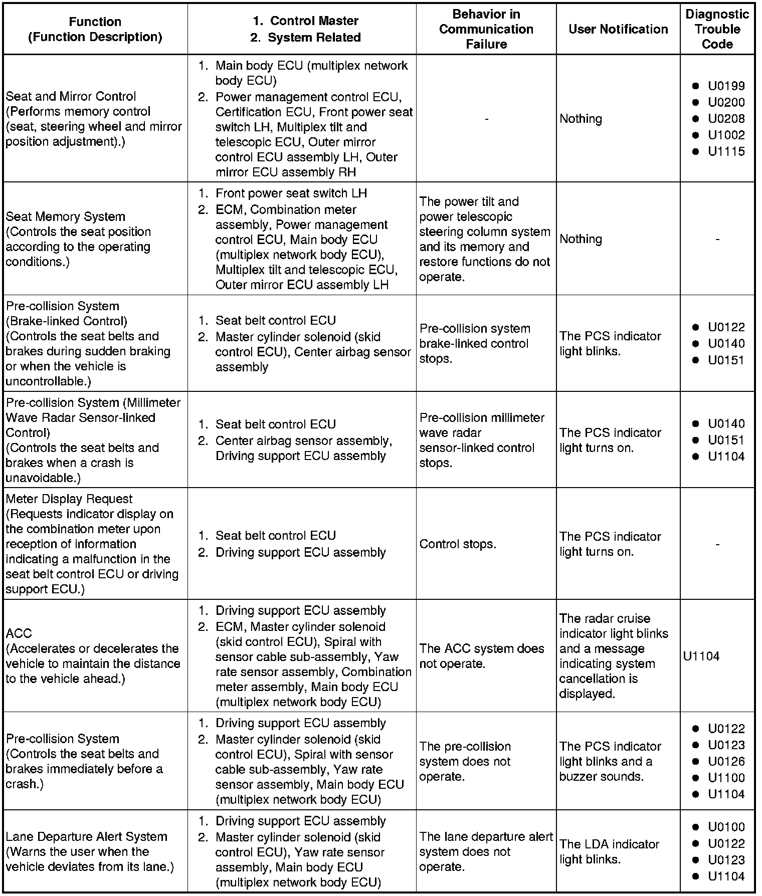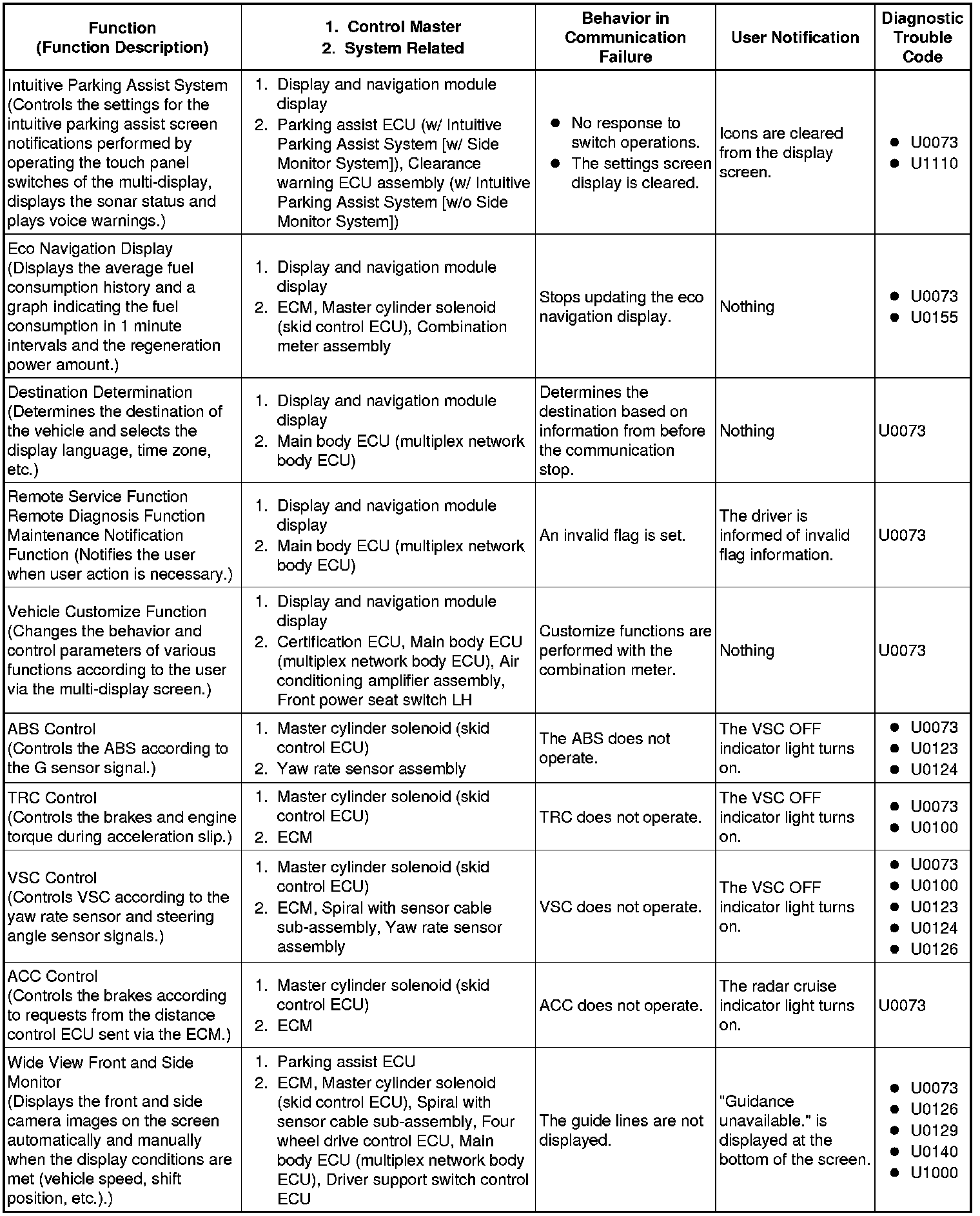 (b) Effects on each system when communication is impossible (for further details, see the pages for each system).