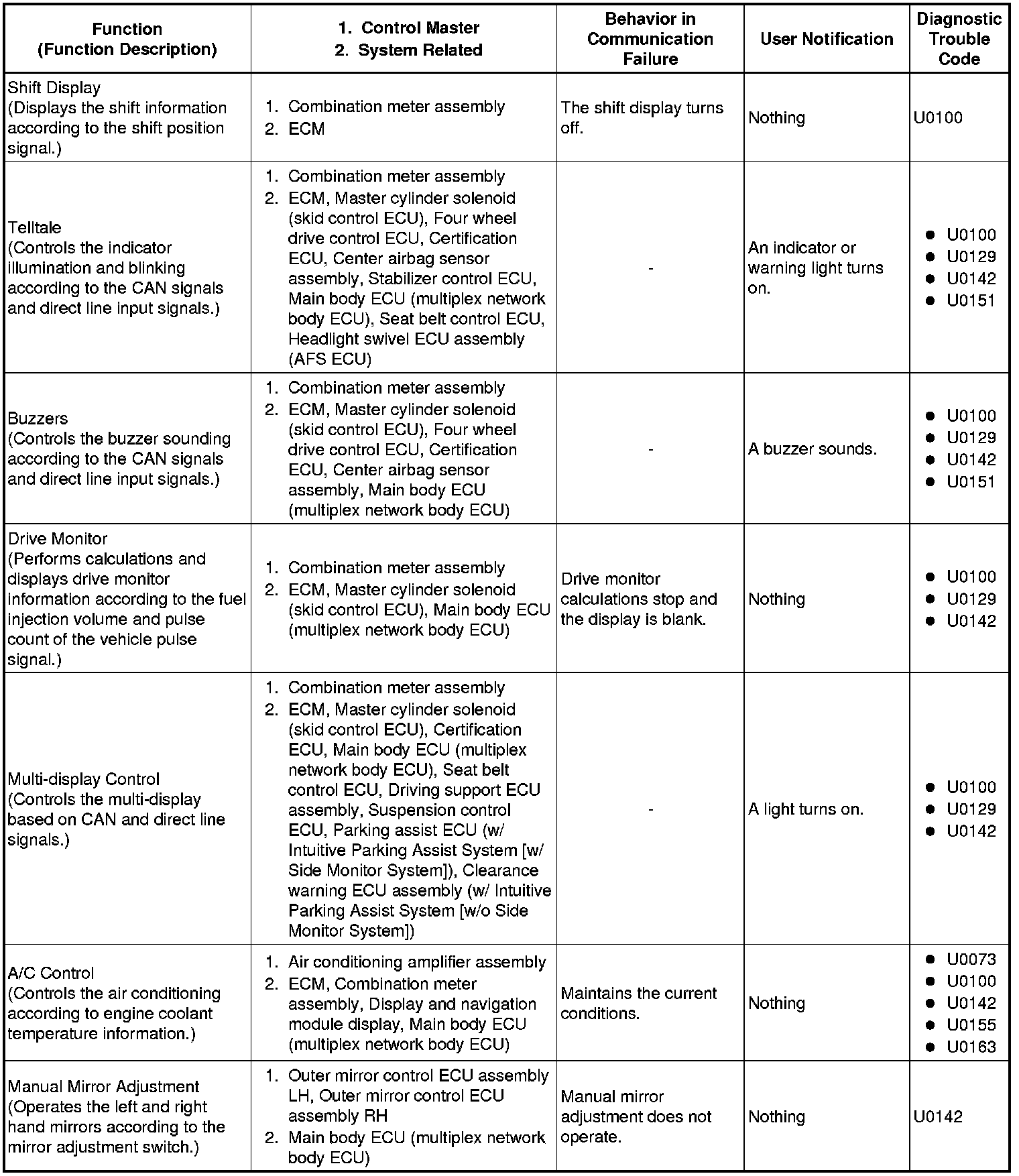 NETWORKING: CAN COMMUNICATION SYSTEM: FAIL-SAFE CHART