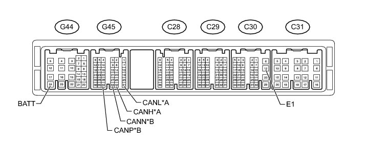 (a) Disconnect the C30, G44 and G45 ECM connectors.