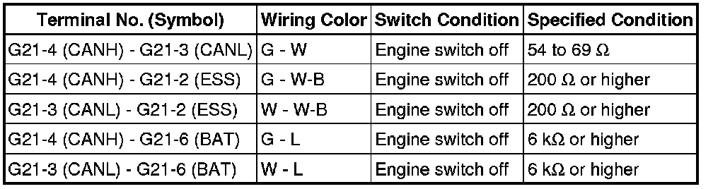 * Before measuring the resistance, leave the vehicle for at least 1 minute and do not operate the engine switch, any switches or any doors. If doors need to be opened in order to check connectors, open the doors and leave them open.