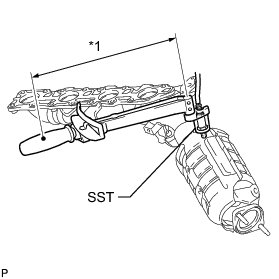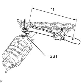 * Use a torque wrench with a fulcrum length of 30 cm (11.8 in.). When using a torque wrench with a fulcrum length that is not 30 cm (11.8 in.), calculate the torque specification for the torque wrench and SST based on the "without SST" torque specification Service Precautions.