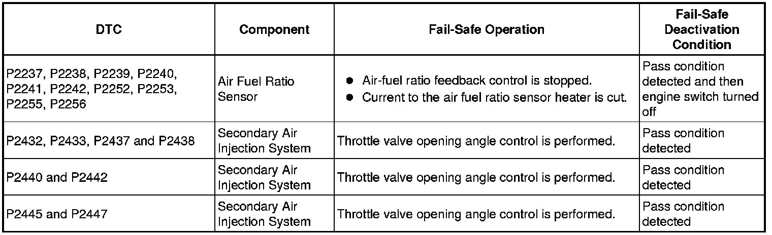 If any of the following DTCs are stored, the ECM enters fail-safe mode to allow the vehicle to be driven temporarily.