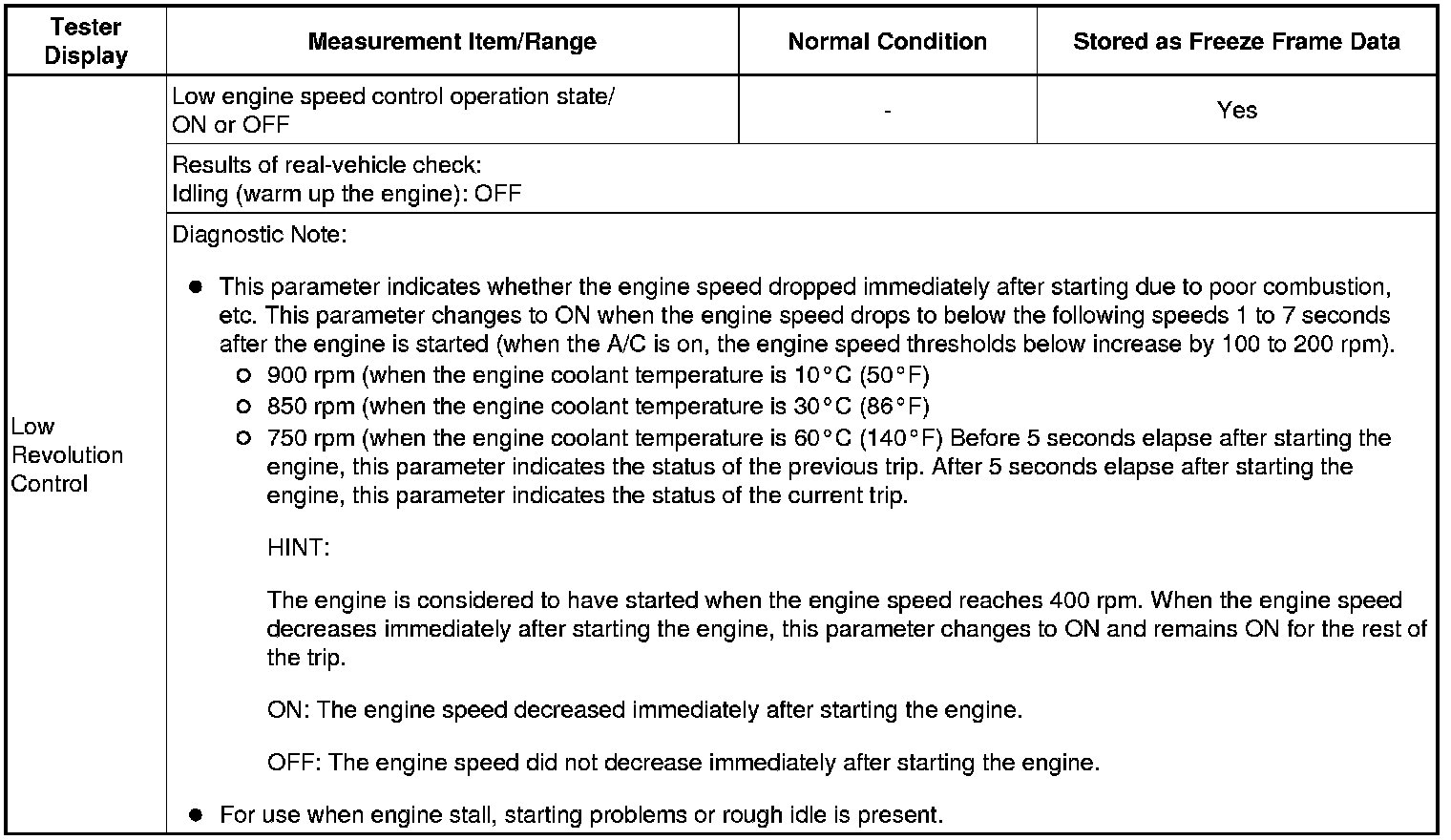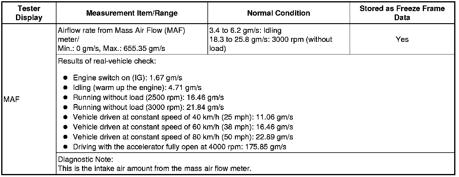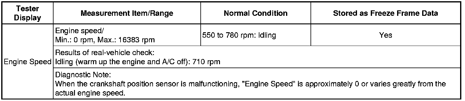 Normal Condition: If no conditions are specifically stated for "idling", the shift lever should be in N or P, the A/C switch should be off and all accessory switches should be off.