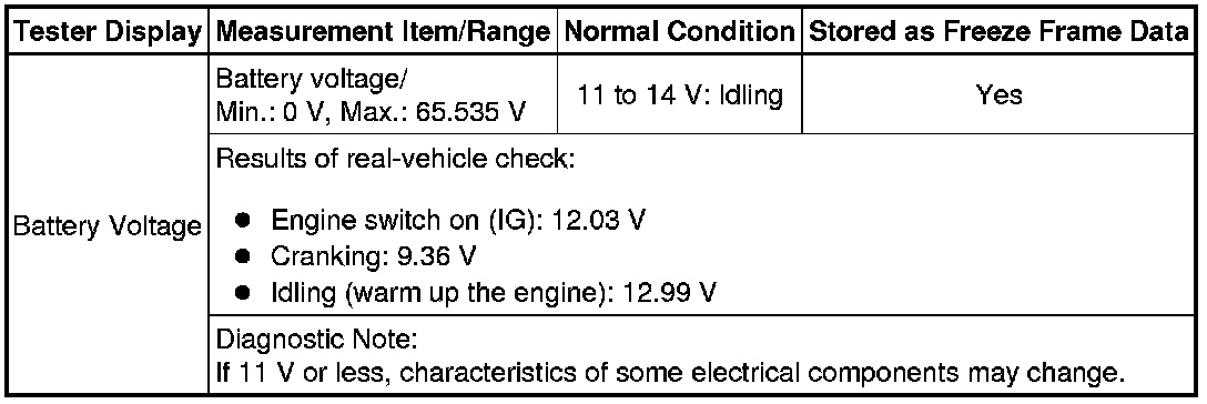 Using the Techstream to read the Data List allows the values or states of switches, sensors, actuators and other items to be read without removing any parts. This non-intrusive inspection can be very useful because intermittent conditions or signals may be discovered before parts or wiring is disturbed. Reading the Data List information early in troubleshooting is one way to save diagnostic time.