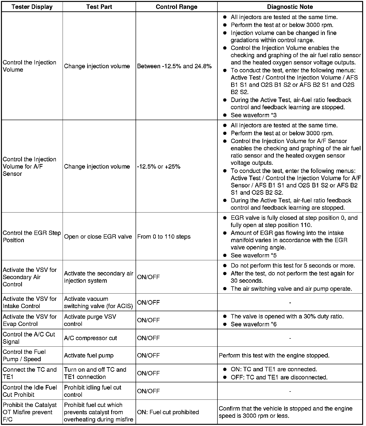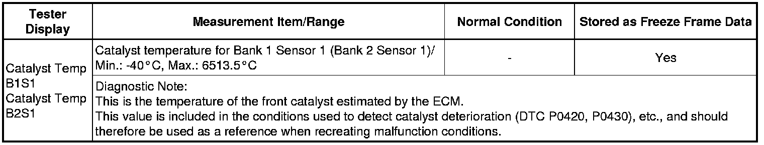 * If the display of the Data List item Catalyst OT MF F/C item is Not Avl, perform this Active Test with the vehicle stopped and the engine idling.