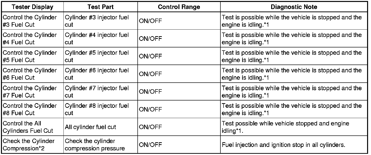 (1) Stop the engine, turn the engine switch on (IG) and turn Control the Cylinder #1 Fuel Cut (to Control the Cylinder #8 Fuel Cut) ON.
