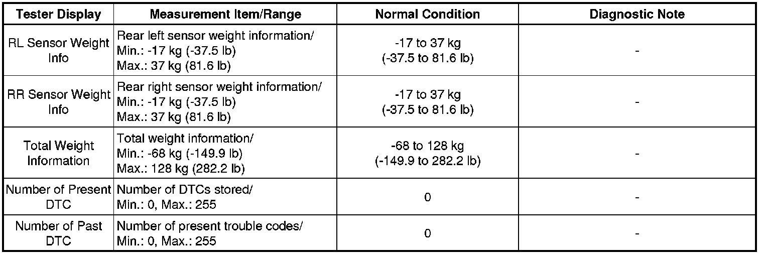 SUPPLEMENTAL RESTRAINT SYSTEMS: OCCUPANT CLASSIFICATION SYSTEM: DATA LIST / ACTIVE TEST