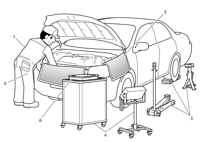 (1) Care must be taken when jacking up and supporting the vehicle. Be sure to lift and support the vehicle at the proper locations.