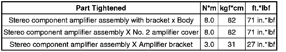 SPECIFICATIONS: AUDIO / VIDEO: TORQUE SPECIFICATIONS