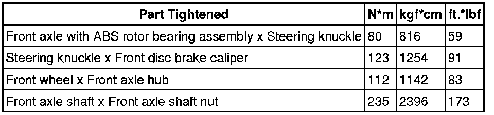 SPECIFICATIONS: AXLE AND DIFFERENTIAL: TORQUE SPECIFICATIONS