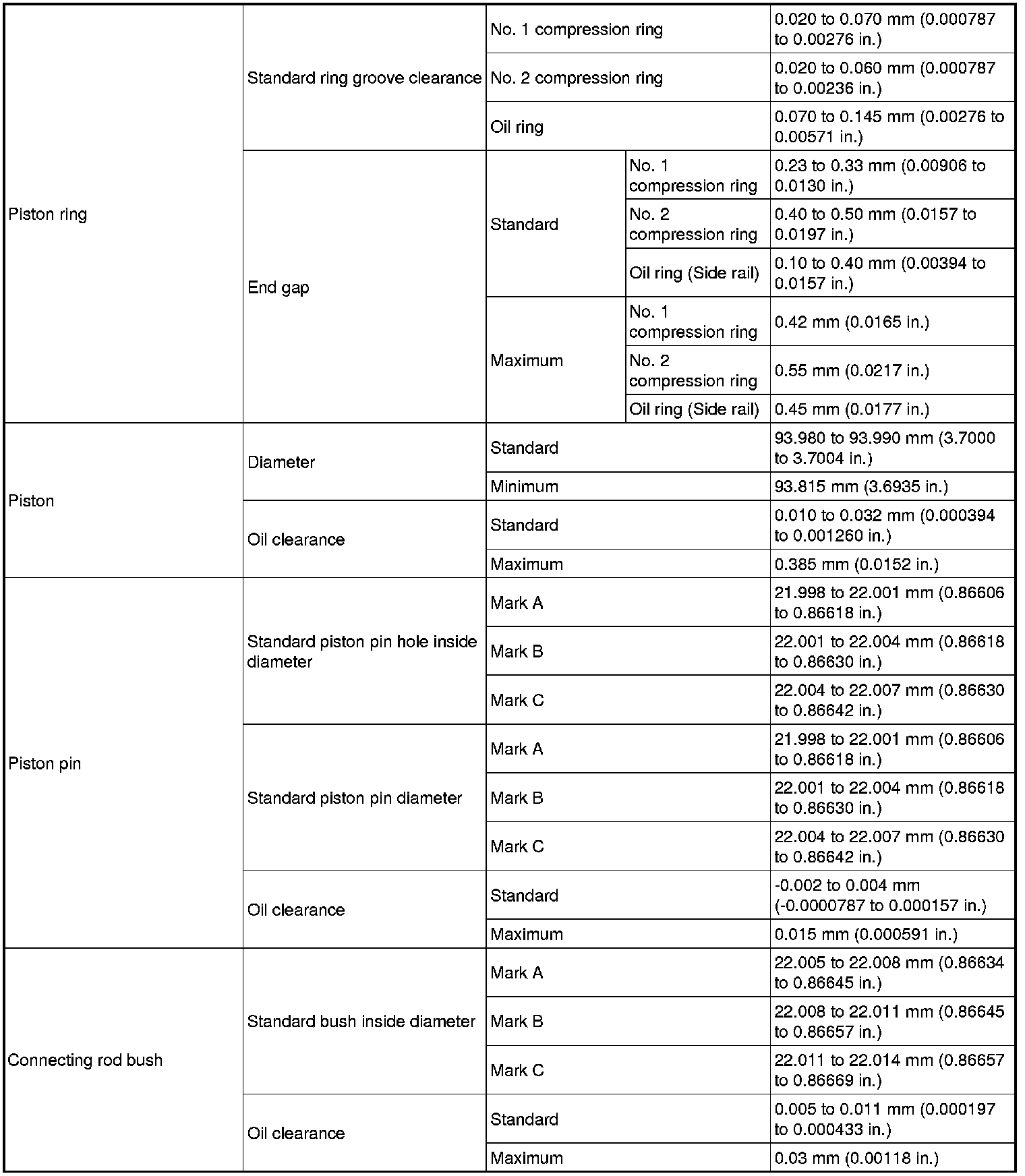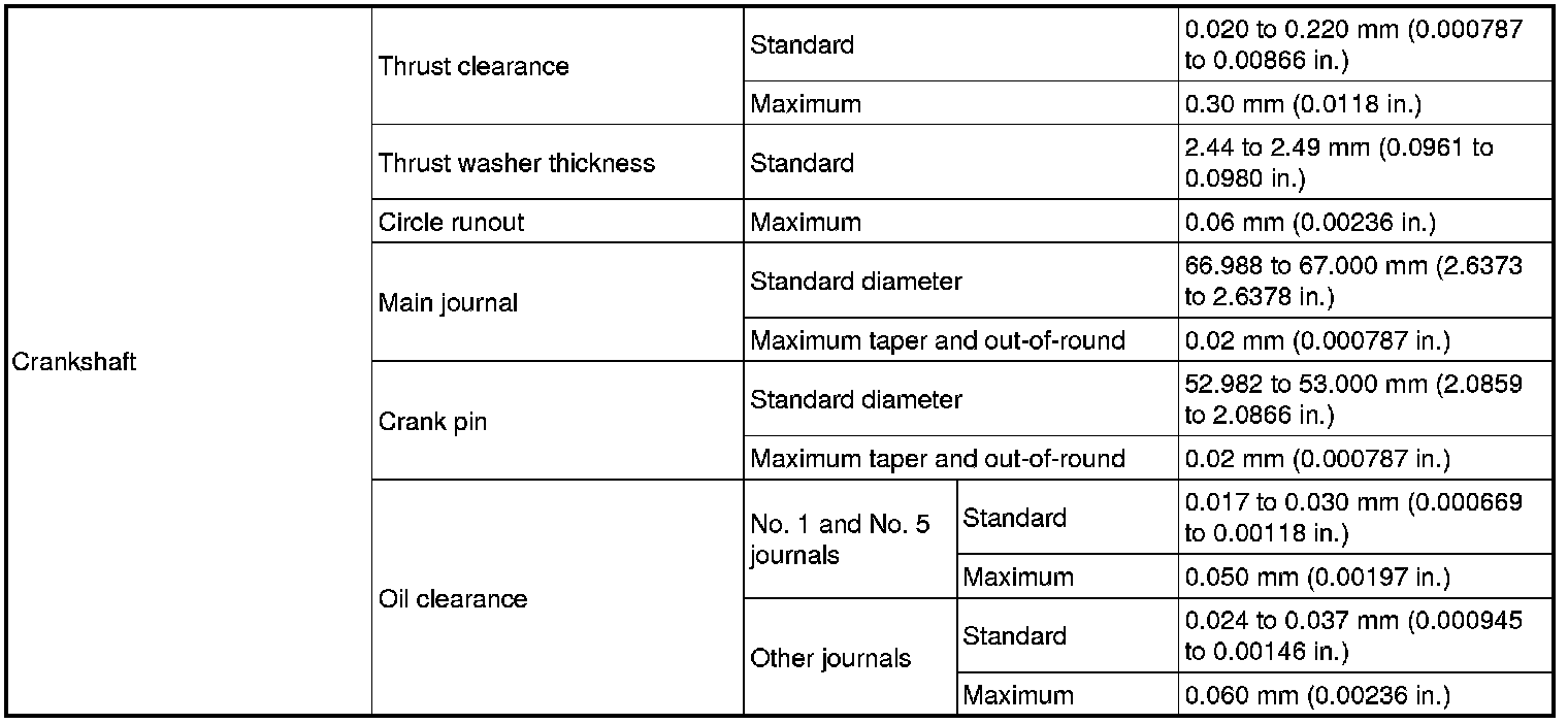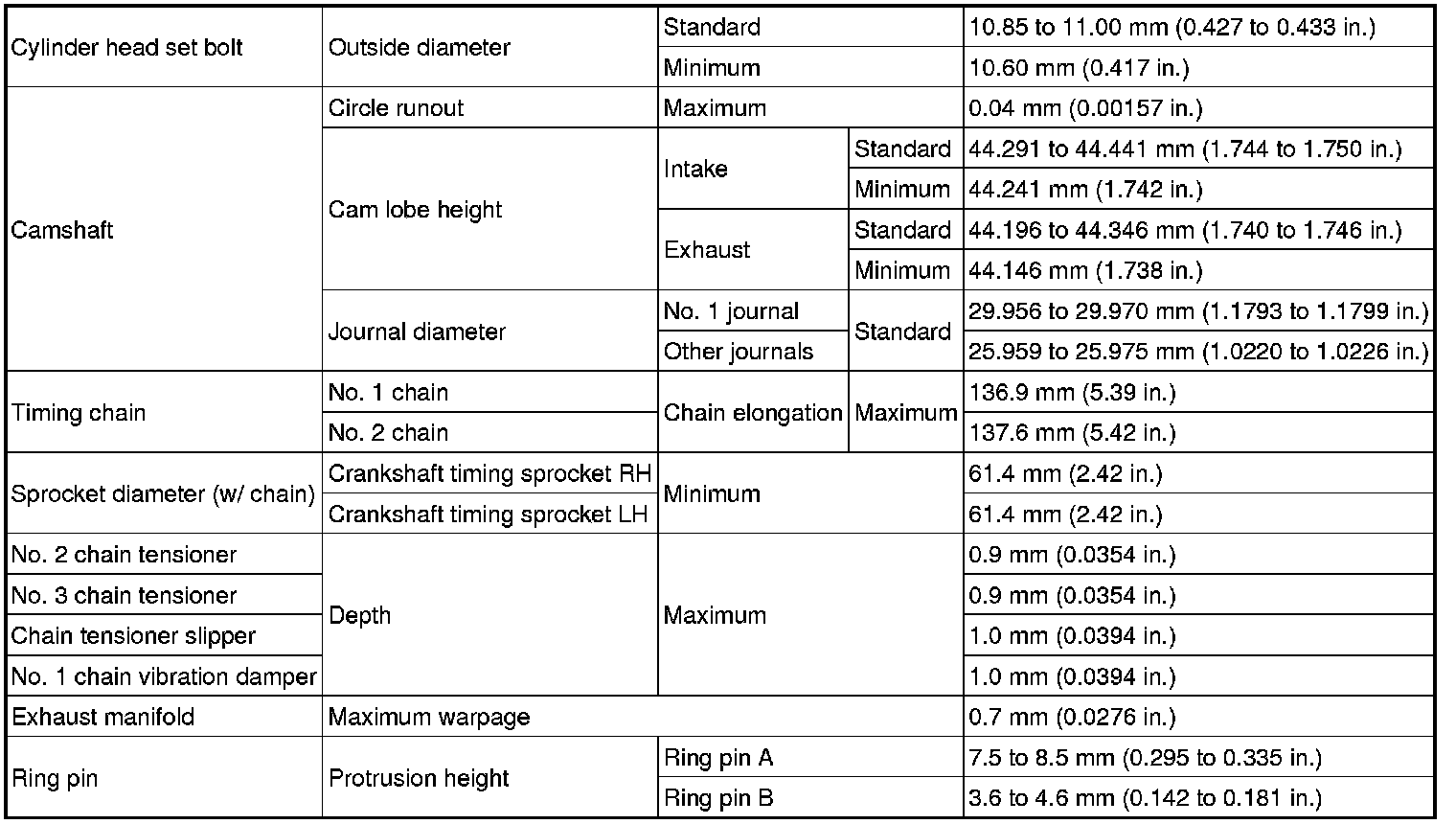 SPECIFICATIONS: 1UR-FE ENGINE MECHANICAL: SERVICE DATA