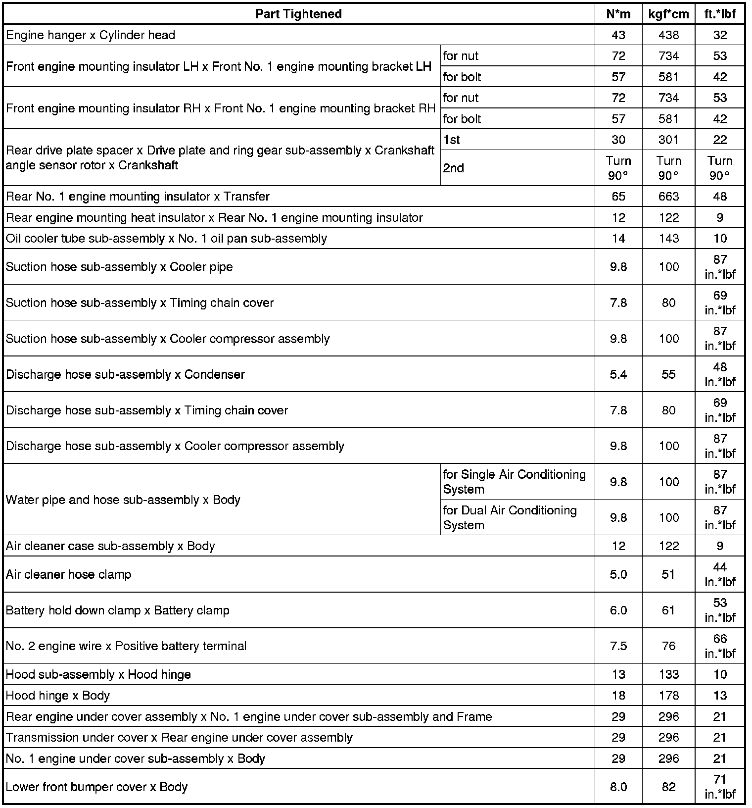 SPECIFICATIONS: 1UR-FE ENGINE MECHANICAL: TORQUE SPECIFICATIONS