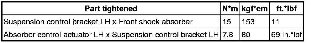 SPECIFICATIONS: SUSPENSION CONTROL: TORQUE SPECIFICATIONS