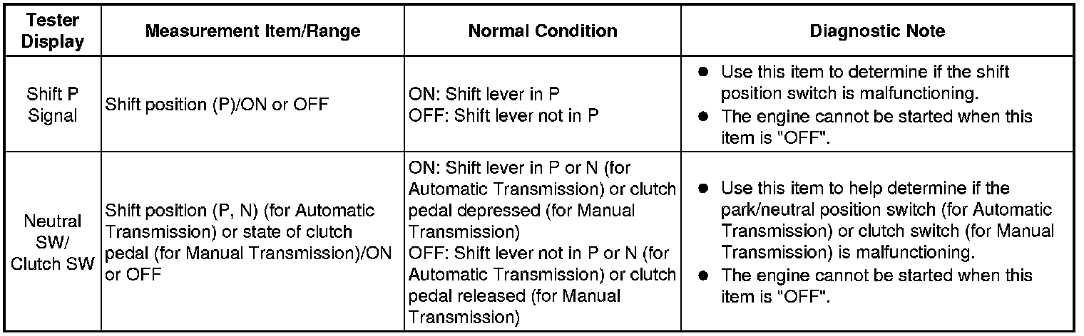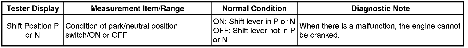 NG -- READ VALUE USING TECHSTREAM (SHIFT P SIGNAL, NEUTRAL SW/ CLUTCH SW, SHIFT POSITION P OR N)