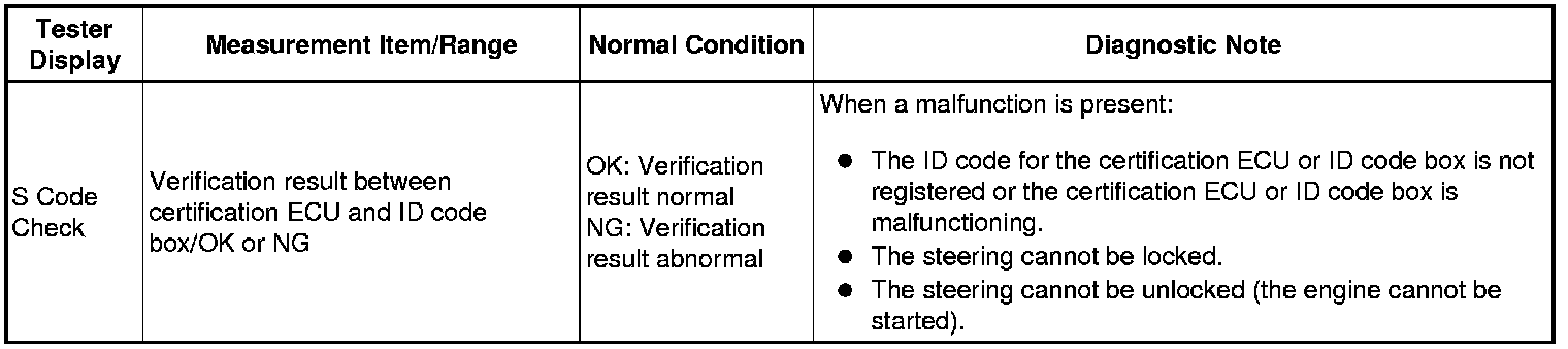 (c) Use the Data List to check if S code certification is functioning properly again.
