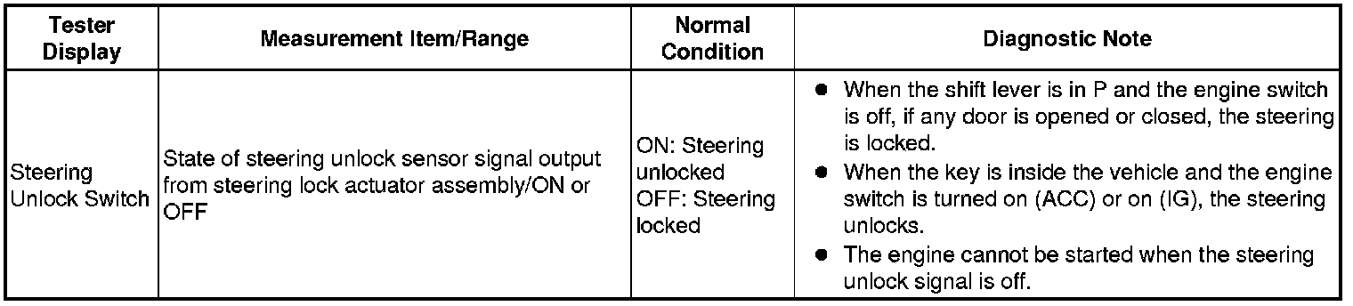 NG -- READ VALUE USING TECHSTREAM (STEERING UNLOCK SWITCH)