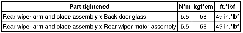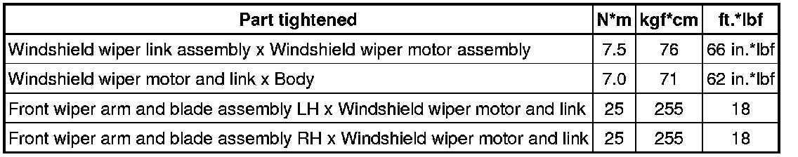 SPECIFICATIONS: WIPER / WASHER: TORQUE SPECIFICATIONS