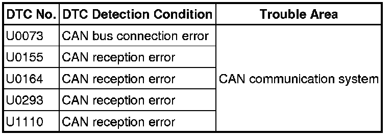 These DTCs are stored when a malfunction occurs in the CAN communication circuit.