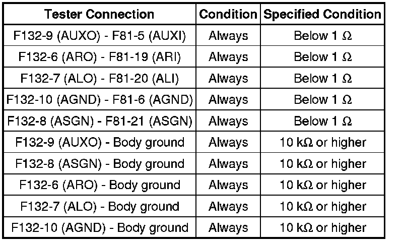AUDIO / VIDEO: AUDIO AND VISUAL SYSTEM (w/ Navigation System): Sound Signal Circuit between Radio Receiver and Stereo Jack Adapter