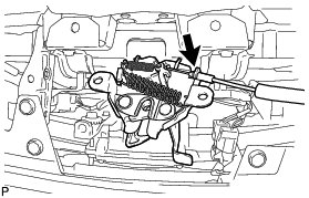 (e) Disconnect the hood lock control cable assembly and remove the hood lock assembly.