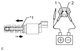 (1) Connect a positive (+) lead from the battery to terminal 1 and a negative (-) lead to terminal 2, and check the movement of the valve.