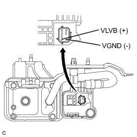 (c) Apply battery voltage to the VLVB and VGND terminals of the canister pump module.